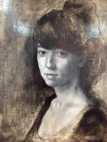 Therefore, he is carefully deliberate, which doesn't exclude that while exploring the inherited treasury of possibilities, he examines with courage befitting his temperament and intellectual nature the possible trajectory of the forward-pointing traces concerning himself. He thus strives to assert and combine the deliberately spontaneous "trace effects" of photographic techniques with academic form studies—in this case, portrait studies.