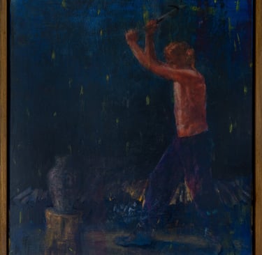 Beyond its literal depiction of a violent act, the scene hints at broader geopolitical tensions, where one force abruptly destabilizes another. Yet the painting does not pass judgment or take sides; instead, it captures the raw intensity of decisive action confronting passive stability. By highlighting this tension, I tried to reflect on life’s shifting priorities and the delicate balance between creation and destruction—reminding us how swiftly even the most treasured objects or ideologies can be undone when faced with resolute force.