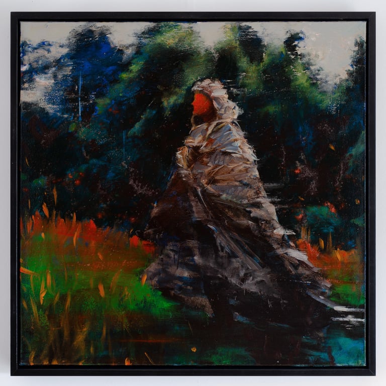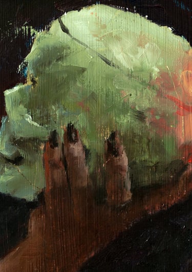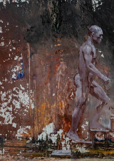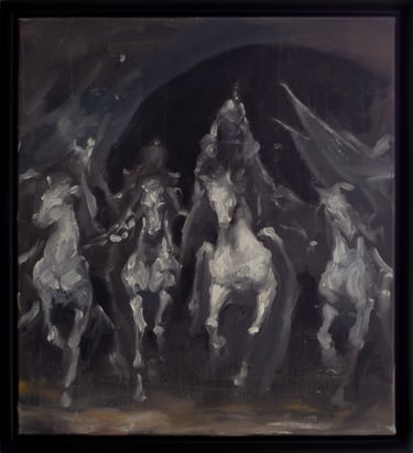 This painting was created after visiting an exhibition of El Greco. I was fascinated by his loose, effortless painting style, where brushstrokes seemed to dance across the canvas, yet resulted in precise forms like limbs or entire figures. The work captures the energy of the Four Horsemen with expressive brushstrokes, focusing on movement, light, and shadow to evoke the chaos and power of the apocalyptic scene.